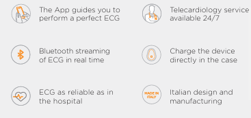 D-Heart Features: • Portable • Designed for all users, no medical background needed • As clinically reliable as a hospital electrocardiograph • Certified system to get a perfect ECG
