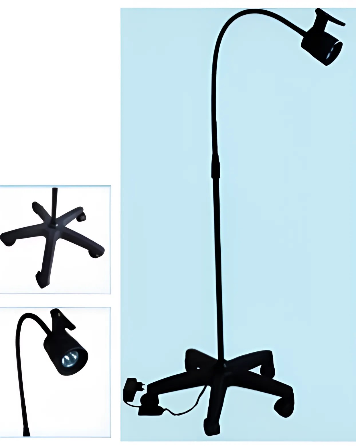 EXAM-LAMPATTTCN: Cold light lamp beads with uniform pure white illumination, stainless steel telescopic pole- Flexible hose, multi-angle lighting, height adjustable, stable base, beautiful appearance. Applications: clinics, gynecology, pet medicine, medical cosmetic surgery and other fields